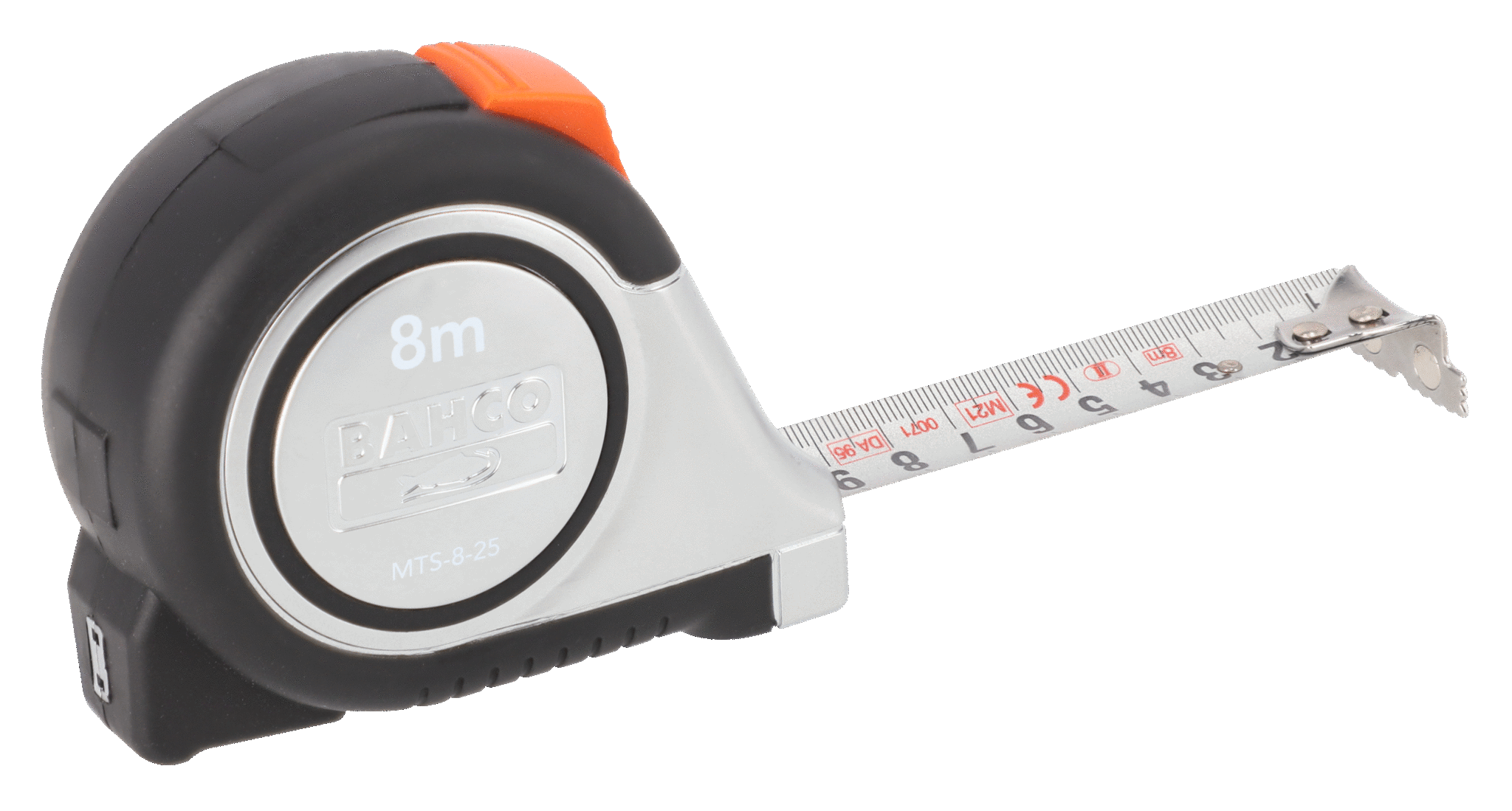 Dobbeltsidig målebånd i metermål med gummigrep 8 m