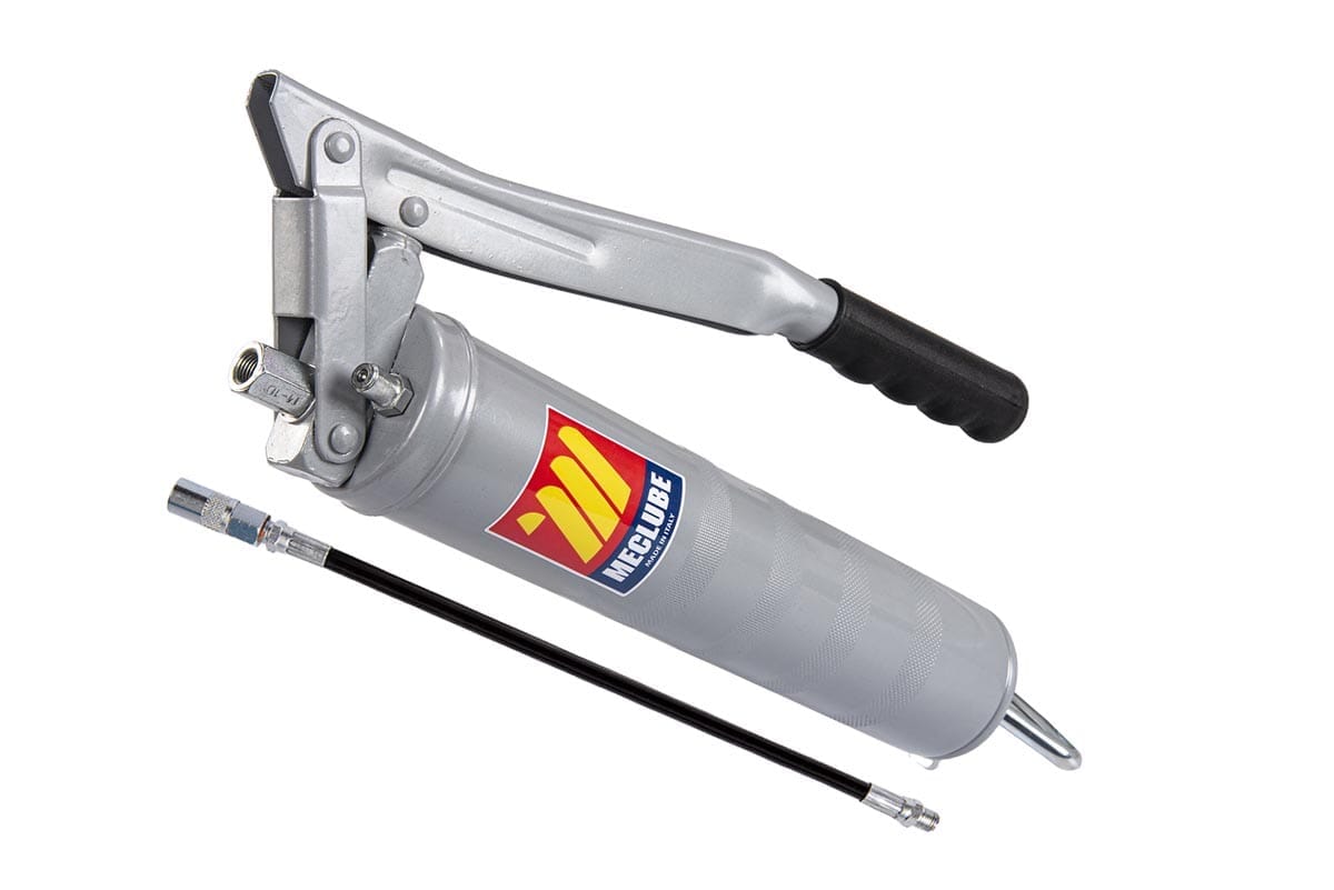 Manuell fettpresse som minimerer søl og spill.Leveres inkl nippel med fire bakker og 30 cm slange. Påfyllingsventil Ø 9mm. Passer for patron Ø52mm 400 g